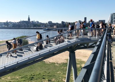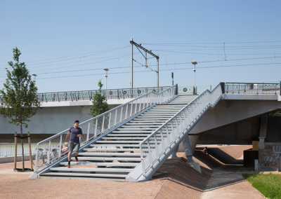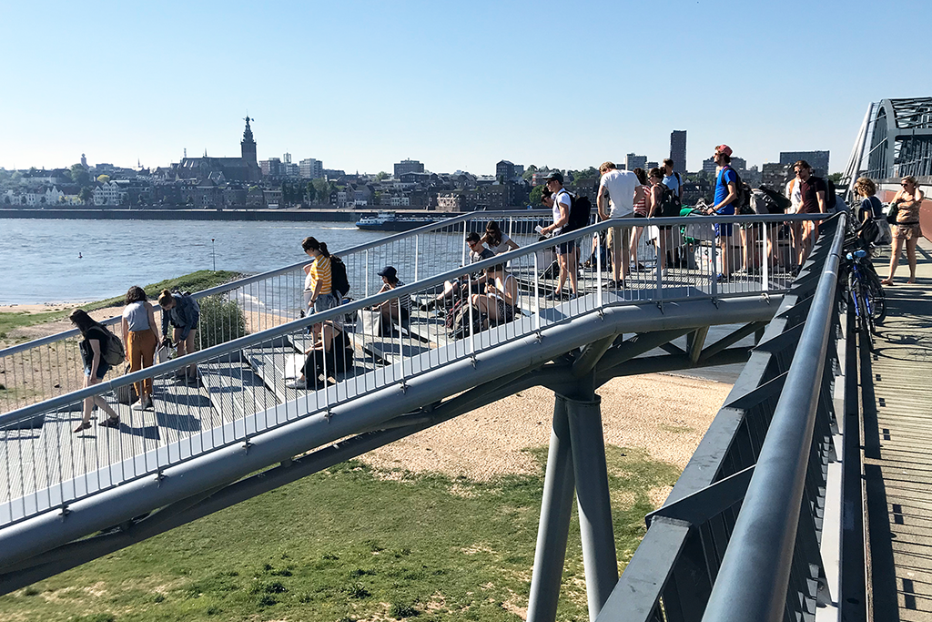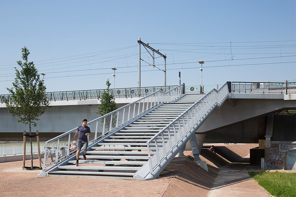Voor de Snelbinder, een fietsbrug die aan de spoorbrug over de Waal is bevestigd, werd door Thijs Asselbergs en Arjan Karssen een ranke trappartij ontworpen die fietsers en voetgangers een verkorte aanlanding biedt op de noordoever van de Waal. De door het duo ontworpen nieuwe Parmasingelbrug ligt in het verlengde van de Waalbrug. De Parmasingelbrug verbindt de bestaande Prins Mauritssingel met de Verlengde Waalbrug en kruist daarbij de Watersingel. De wandbekleding van betonelementen met een lamellenpatroon is bepalend voor de robuuste uitstraling van de brug.